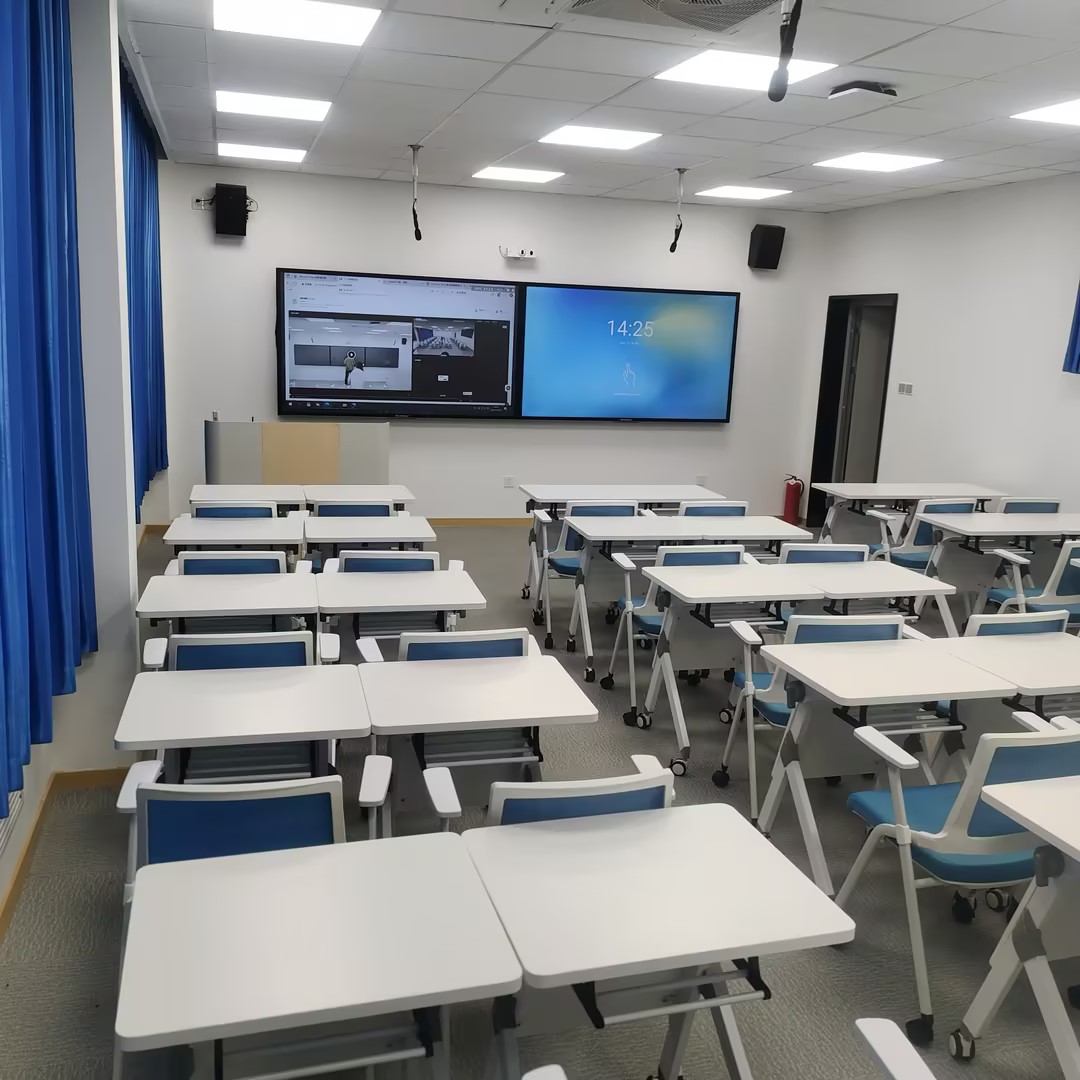 该项目于2025年7月完成全部招标流程并同时开始施工,8月底圆满完成建设工作,新学期伊始便顺利进入试运行阶段。在为期一个多月的试运行期间,智慧教室承担了授课、讲座、会议等任务,接受了全面的测试。语言视听中心组织了多轮专题培训,确保av直播