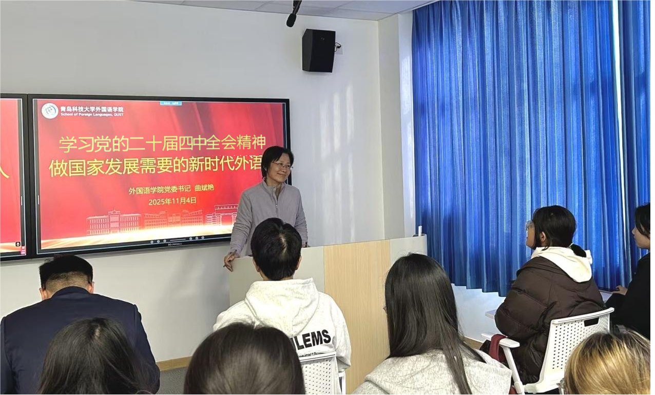 党委书记曲斌艳以《学习党的二十届四中全会精神,做国家发展需要的新时代外语人》为题,为联系班级讲授专题思政课。