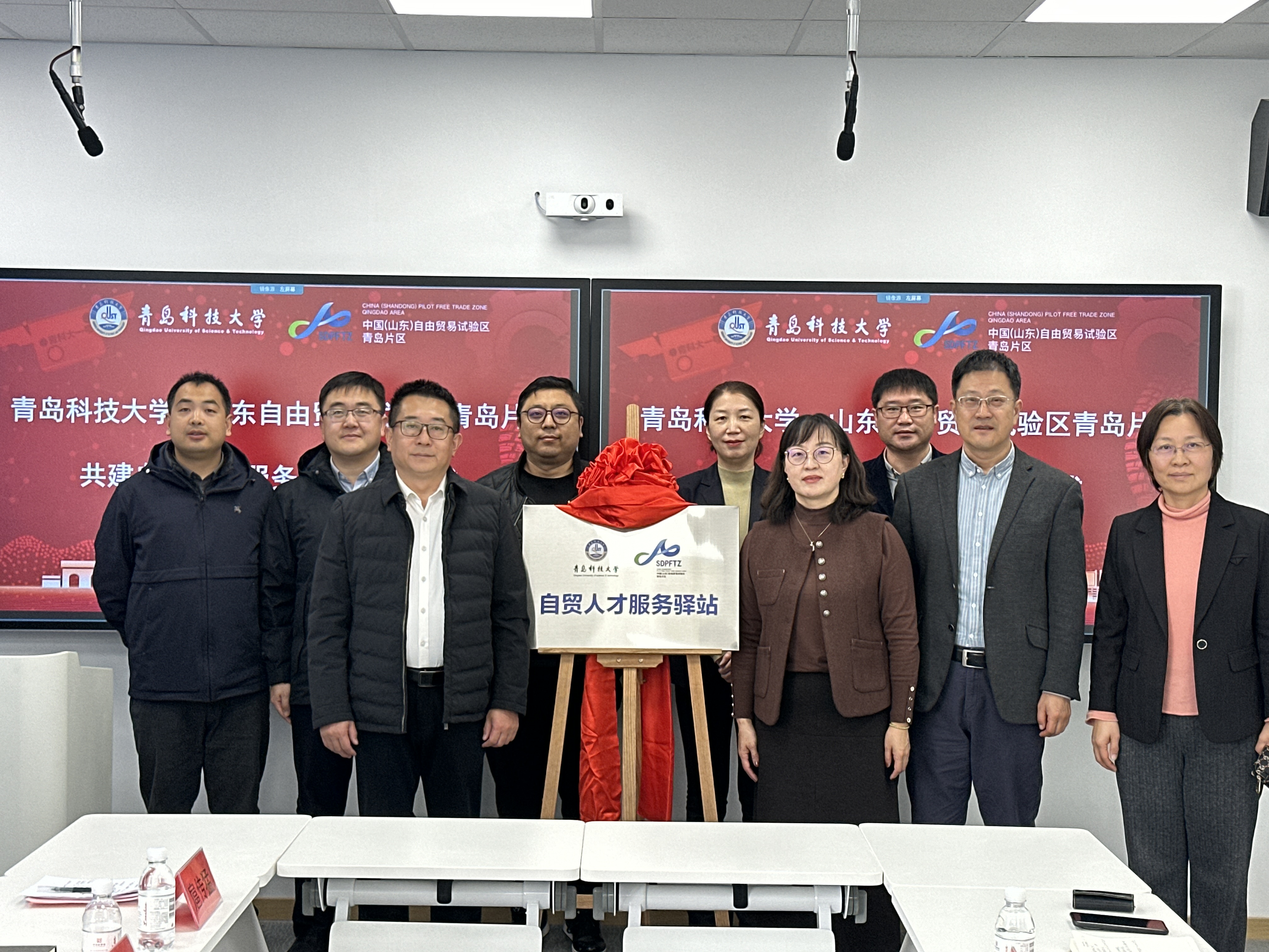 11月18日上午,青岛科技大学与山东自由贸易试验区青岛片区共建“自贸人才服务驿站”揭牌仪式在av直播