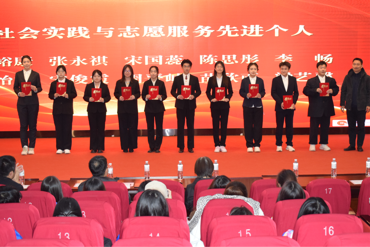 第二届“筱阳杯”十大优秀学生颁奖,十名获奖学生以德立身、精进学业,以行践诺、绽放光彩,用执着与实干为全院学子树立了鲜活标杆;王灏为在国家级、省级多项专业赛事中斩获佳绩的优秀学生颁奖,获奖学子在演讲台的妙语连珠、辩论赛的思辨交锋、翻译笔尖的精雕细琢中,展现了外语人的卓越专业风采;曲斌艳、雷永亮为社会实践优秀团队和社会实践与志愿服务先进个人颁奖,2支优秀团队凝心聚力扎根基层,10名先进个人热忱奉献发光发热,生动诠释了“奉献、友爱、互助、进步”的志愿精神。
