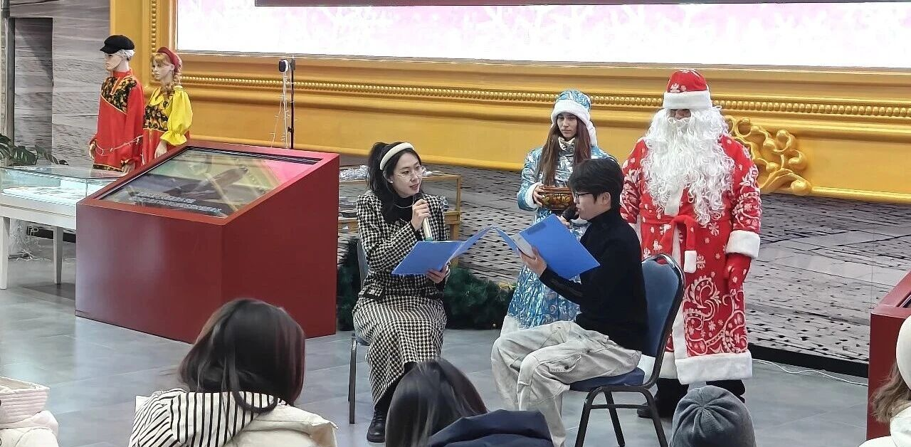 俄语系与上合示范区俄罗斯馆于12月26日下午联合举办俄罗斯新年庆祝活动。活动精彩纷呈,汇聚青岛科技大学俄语系师生、在华俄罗斯及其他国家留学生、兄弟高校师生代表,众人共赴欢乐盛典迎接新年,助力文化互通与情感共融。