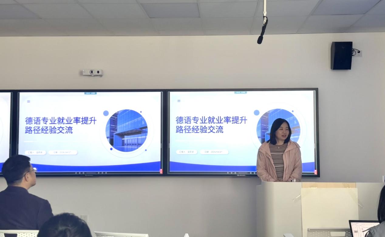 徐从德老师作交流分享,他围绕全程领跑、靶向助力、协同育人三方面分享就业工作先进经验;德语系主任巫莉丽老师从合力、贯通、传承、节点、引导五大路径,交流就业工作实践心得,为参会人员提供借鉴。