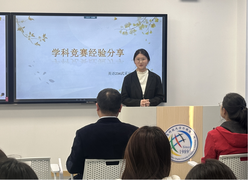 学科竞赛代表英语234班武采辰,在2025年“外研社·国才杯”“理解当代中国”全国大学生外语能力大赛及全国商务英语竞赛中荣获国家级奖项,她结合自身备赛、参赛经历,介绍了参加学科竞赛的竞赛备赛流程、团队协作技巧、资源整合方法等核心要点,鼓励同学们主动牵头组队,以赛促学、以赛促练,提升自身及身边同学的专业实践能力。