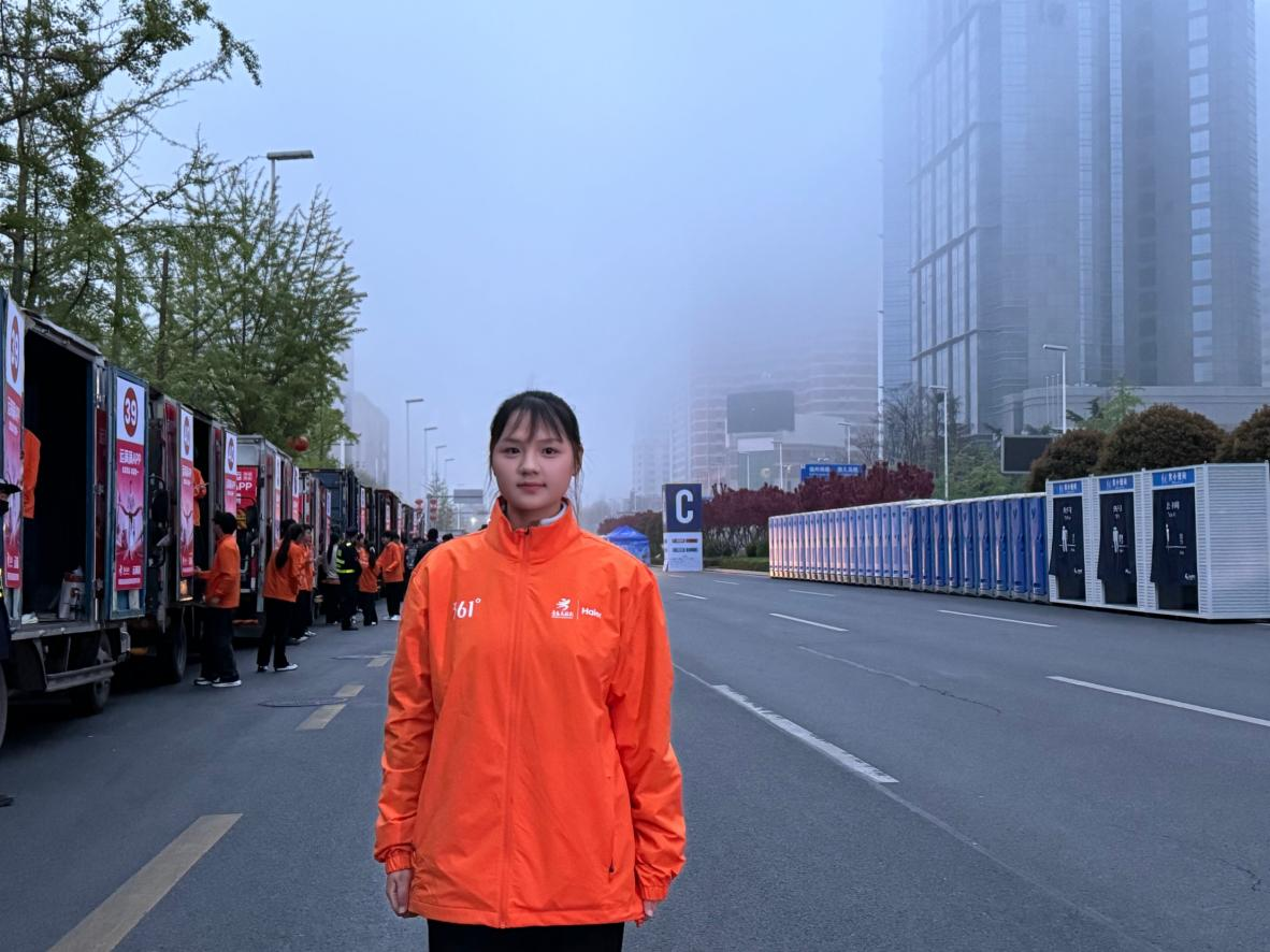 天刚蒙蒙亮,赛道上还留着夜色的余温,作为英语专业的志愿者,我站在精英组存衣车前,指尖藏着一丝紧张——怕沟通失准,怕辜负这份信任。